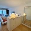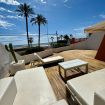 Lujoso apartamento en primera línea de playa frente a la siesta Jávea cuenta con 3 dormitorios, 2 baños elegantes, cocina, chimenea y una deslumbrante zona de terraza con vistas panorámicas al mar Mediterráneo.